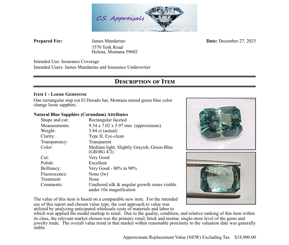 Remarkable is the first word that comes to mind when I set my eyes on this 3.84ct Montana Sapphire. The rarity of this stone can't be understated. VVS clarity and stunning color shift, ranging from deep green to teal depending on the lighting with subtle silk showing only under specific circumstances proof of it's unheated all natural glory. Meticulously cut by renowned lapidary artist Josh Jones, this untreated sapphire is a true treasure for any collector. Don't miss out on this exceptional stone. 9.54x7.02x5.97mm. Appraisal done by official outside appraiser Cynthia Shaver .
